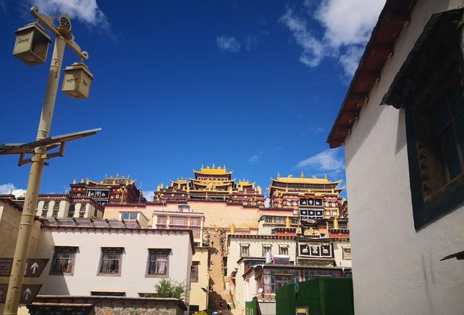 가단 송찬림사는 샹그릴라 현성 북쪽의 불병산 기슭에 위치하고 윈난에서 가장 큰 티베트 불교 사원으로 유명한 강구"13림"중의 하나이다.1674년, 5세 달라이 라마가 청나라 강희 황제에게 비준을 청한 후, 직접 부지를 선정하여 건설하였고, 사명을"가단 송찬림사"라고 하사하였다.청나라 건륭년에 흠정 승려의 정원은 226명이었다.중화인명공화국이 창건될 때 승려수는 정액을 돌파하여 1329명에 달하였고 생불이 9명에 달하였으며 많을 때는 2000여명에 달하였다.그의 신도들은 민족 성분이 박잡하고, 역사상 티베트 지역에 이름을 날린 고승들이 적지 않게 나타났기 때문에, 그의 명성은 많은 사찰에 미치지 못했다.